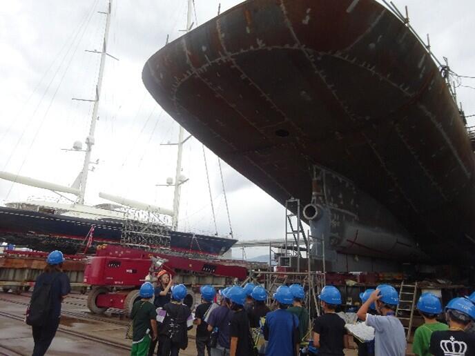 本日、5年生が海と生きる探究活動の時間に、みらい造船の見学を行いました。