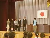 第1学期始業式に先立って,今年度転入した5名の先生方を児童に紹介しました。