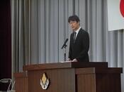 校長先生から『中学校での3年間は、自立への3年間です。自分に責任を持つこと、相手の立場で考えること、感謝の気持ちを持つこと』の式辞があり、それに対し、小野寺Aさんが堂々と誓いの言葉を述べました。