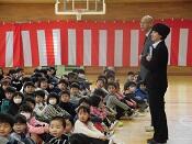 今年の1年生は34名です。たくさんのご来賓や保護者が参加して入学式が行われました。校長先生から,1年生に「あ・い・う・え・お」のお話がありました。