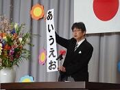 「あ」はあいさつの「あ」です。「い」は命の「い」です。「う」は運動の「う」です。「え」は笑顔の「え」です。「お」は思いやりの「お」です。「あ・い・う・え・お」を大切にしながら,明日から毎日元気に楽しく過ごしましょう。
