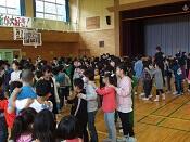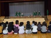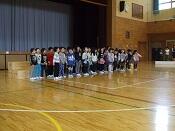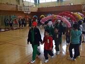 1年生と6年生が手をつないでの入場から始まりました。2年生のお迎えの言葉や6年生の学校行事を紹介した寸劇,1年生からのお礼の歌などが行われました。全校ゲームの「じゃんけんれっしゃ」では,1年生の男子児童が見事一番になりました。