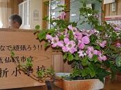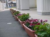正面玄関前には,支援でいただいたナデシコ(洋名:オリビア),ペチュニア,パニックドーム等の花がきれいにプランターに植えられ,来校されるお客さんを迎えるように飾られました。今後は,チューリップの球根をぬいた後の花壇にも植栽の予定です。花いっぱいの学校になりそうです。