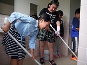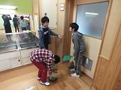 広い校庭と大きな校舎に,ちょっぴり驚いた様子も見られましたが,受付が終わると,教室に入って,ランドセルや手荷物を自分のロッカーに入れました。「ここが、君のロッカーだよ。」優しく6年生のお兄さん・お姉さんが教えてくれました。6年生は,新入生が登校する前に,教室や廊下のお掃除もしてくれました。とても頼もしい6年生です。