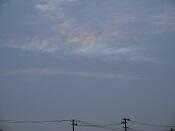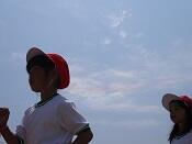 そんな鹿折小の運動会を祝福してか,空には,『彩雲(さいうん)』が見られました。この現象は,日光が雲に含まれる水滴や氷で回折し,その度合いが光の波長によって異なるために生じる大気現象で,昔から吉兆(よいことの前兆)とされています。