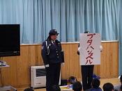 今日は,そういった意味でもとても重要な行事でした。しかし,前線の通過で雨の天気,外での活動ができません。やむを得ず,低・中・高学年に分かれての『室内での交通安全教室』となりました。