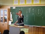 3年生では,初めての習字(毛筆)の授業に,期待感100%。伊藤先生が担当しますが,今日は,『習字を学習することの意味や特に気を付けること』『書写の学習で頑張ってほしいこと,身につけて欲しいこと』そして『用具の扱い方』などにつて,学習していました。3年生は,伊藤先生の発問に意欲満々答えていました。
