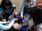 2年生は,一人一鉢で『ミニトマトの種植え』をしていました。ミニトマトは,それはそれは小さな種です。一つ一つていねいに摘んでは,自分の鉢に植え,そっと土をかけていました。これからは,教室のベランダにおいて,いつでも観察やお世話ができるようにしていくそうです。