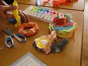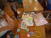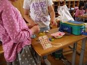 白い紙粘土に,絵の具を混ぜ込んで『カラー粘土』にし,それを思い思いにお店の商品に仕上げていく学習です。ペンダントあり,キーホルダーあり,小物入れなどもありました。これらが店頭に並んだら,さぞかし華やかなお店が開店することでしょう。今から完成と店開きが楽しみです。