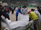 今春卒業したお子さんたちと中学2年生の先輩たち,そしてその保護者の方々がたくさん集まってくださいました。ビニルハウスを外し,みんなで草取りし,その後,枯れてしまった『お茶の木』の植え替えをしました。作業もさることかがら,これまでの交流の度合いが深いことから,思い出話やら,中学校生活のことやら・・・,いろいろな所で話が盛り上がっていました。