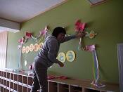4月11日(月)の入学式に向け,先生方総出で,迎える準備をしました。黒板や教室の後ろ・側面の壁,廊下の掲示板などに「大歓迎」の装飾がところせましと飾られました。もう新入生を迎えるばかりです。