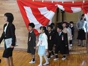 それでも,式では,元気に「あいさつ」ができました。来賓の方には「ありがとうございます。」先生方には「よろしくおねがいします。」返事は「ハイッ」・・・・・とてもお利口さんの1年生でした。とても立派にできたので,話の終わりに,みんなに100点満点をあげました。