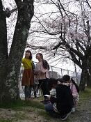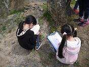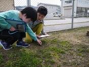 3年生は校庭に飛び出し,さっそく『春探し』です。サクラの高~い枝先を見上げる子,地面に顔を近づけ何やら,手にとって観察する子・・・。思い思いに観察しては,カードに記録していきます。