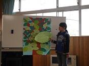 はじめに,JRCの活動について,パソコンをスクリーンに映し出し,活動の概要を説明してもらいました。会では,『健康・安全』『奉仕』『国際理解・親善』を実践目標に,主体性をはぐくむために『気づき』『考え』『実行する』ことが態度目標に掲げられています。