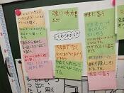 私が心打たれたのは,講師の先生の「今までにいじめられたことがある人・・・?」「友だちがいじめられているのを見たことがある人・・・?」「友だちをいじめたことがある人・・・?」の問いに隠すことなく,正直に答えていたことです。つまり,自分の心の中にある『闇』の存在をしっかりと自覚し,それを良心という心の鏡に映し出して,客観的に理解していると言うことです。ですから,5年生が,授業のまとめで見つけ出した答えは,決して『建前だけのお利口さんの答え』にはなっていないのです。