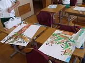 すっかり葉を落とし,枝だけになった校地内のサクラの木を題材に,4年生が写生しています。水彩絵の具の特長をうまく生かして,木肌の色の微妙なちがいを上手に表現しています。葉は無くても,花を咲かせる春を夢見て、これから厳しい冬に向かうサクラの秘めた生命力を色と形で表現しています。これも完成が楽しみです。