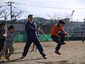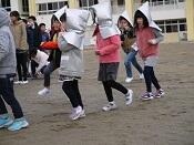 元気に登校した児童でしたが,今日はこの冬一番の寒さ。業間『たてわり活動』も会場を体育館に移して『長縄跳び』を楽しみました。跳んでいる様子を見ると,みんな大分上手になってきました。間をおかずに次から次へと跳んでいました。