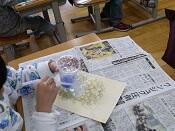 教室では,2年生が図工で新しい表現技法に挑戦していました。石けん水に絵の具を入れて,『色石けん水』をつくります。それをシャボン玉のように紙の上に泡にし,その色と形を定着させるのです。何とも不思議な『シャボン玉』の絵です。今日は『試し』の学習でしたが,できた色や形から,「○○に似てるな。○○みたいだぞ。」と思いを広げて,作品として仕上げていくようです。さ~て,2年生は,『シャボン玉』が偶然に描いた模様を何に見立てて,絵に仕上げるでしょう。とても楽しみです。
