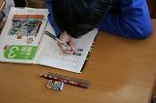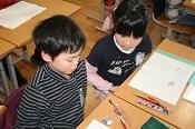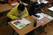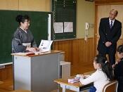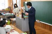午前中,3年生は,総合的な学習『鹿折の宝ものをさぐろう!~人・自然・もの~』で,「白山小唄」の歴史や内容を探っているグループが,講師を招いてお話を聞きました。これまで調べていて疑問に思ってることを直接講師にたずねる活動でした。次から次に質問が出され,講師の先生もうれしい悲鳴を上げていらっしゃいました。学校統合で『白山小唄』がこのまま消えてしまうのではないかと心配されており,学校に呼ばれてお話しができることは大変うれしいともおっしゃっていました。ありがとうございました。