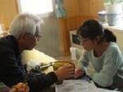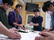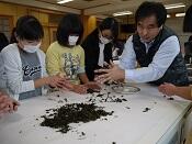 震災以来あたたかい御支援をいただいている『気仙沼と共に歩む会 さやま』様による恒例の交流学習『さやま茶手もみ体験学習』が行われました。蒸して柔らかくした茶葉から水分がなくなるまで手もみをします。手もみをして,フライパンでから煎りし,また手もみをしてから煎りする・・・・・,何度も何度も繰り返し,最後には,普段飲んでいる茶葉のようにすっかり乾燥させてできあがりです。「ていねいにもめばもむほど美味しくなるんだよ。」と手ほどきを受けて,みんなで一生懸命茶葉をもみました。手のひらが,緑色に変色し,お茶の香りがつくほどです。できあがったお茶を入れてもらって,私もごちそうになりました。普段飲むお茶より,とても深入りの濃いお茶になりました。講師の方にたずねると,狭山地方の人は、『もっと濃いお茶を飲んでいますよ。』ということでした。