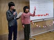 78日間の第2学期も,いよいよ明日がフィナーレ。寒さが少しは緩んだとはいえ,外は,吐く息は白くなるどの寒さです。少し柔らかい校庭もなんのその,子供たちは冬休みの間いっしょに過ごせないこと,いっしょに学習できないこと,遊べないこと・・・を知ってか知らずか,あたかもその別れを惜しむように,男女仲良く校庭であそぶ姿が目に入りました。ワーッ,キャーッと元気な声が響き渡っていました。男女の隔てなく仲良く遊び姿に,鹿折っ子の『純粋さ・素直さ』をあらためて見ることができます。