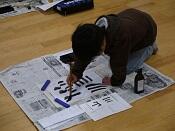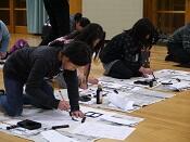 2学期もいよいよ大詰めを迎えました。今日の放課後から,希望者を募っての『書きぞめ特別練習』がスタートしました。若草ホールに集まった3年生以上の精鋭たちは,担当の先生のかきかたの説明(手本の説明)を聞いて,さっそく練習に取りかかりました。『どんな文字も,基本の点画の集合体です。基本を大事にして書きましょう。』との励ましを受けて,点,画,止め,はらいの練習をしました。若草ホールには,墨のにおいがいっぱいに広がり,それだけでなんだかしっとりと落ち着いた気分になります。一筆一筆,真剣に筆を走らせる姿から,何とも言えない緊張感が伝わってきました。冬の日暮れの関係から,練習時間は十分とれませんが,時間と期間が短い分,集中して頑張ってほしいです。