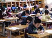 3学期が始まってまだ1週間だというのに,来週月曜日は,いよいよ『校内書きぞめ席書大会』です。2学期後半から,学級ごとに書写の時間や放課後の特別練習をとおして磨いてきた技を試す時がやって来ました。放課後の特別練習の様子をのぞいてみると,教室への侵入者を拒むようなピーッンと張り詰めた空気が漂っています。どの子も真剣に集中して書き込んでいました。
