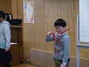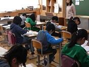 今年度,最高学年として鹿折小学校をリードしてきた6年生の教室をのぞいてみたら,『英語劇:ももたろう』の練習をしていました。小学校でも,新しい学習指導要領では,ひとつの教科として扱われるようになります。これまでの『外国語活動』の集大成として,『英語劇』に挑戦しています。話の筋は誰もが知っているお話しですから,日本語のセリフもみな頭に入っています。それを英語に置き換えて,身振り手振りを交えながら,劇に仕上げていきます。英語がずいぶん子供たちの身近になってきたことを痛感します。