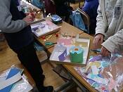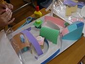 指先を器用に使いこなせるのは,高等動物の人間だけです。5年生はその能力をフルに使って,紙工作『ビー玉 大冒険』の学習をしています。限られた箱スペースの中をいろいろな材質の紙を切って,並べて,重ねて,曲げて,ねじって・・・・,ビー玉が転がる迷路コースを作る学習です。
