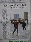 今日の新聞に県南の小学校で『雪上カルタ大会』が行われたという記事が載っていました。本校でも,白山小学校が伝統行事として実施していた『雪上カルタ大会』を新しい伝統として継続しようと,その準備をしています。職員室前の廊下には,読み札と絵札がきれいに,「まだかなあ~,まだかなあ~!」とその日を待っています。雪はいつ降るか,どれくらい降るか,神のみぞ知る・・・という難点があるので,「何月何日に実施します。」と予告できません。それでも,いつ降るか分からない雪を子供たちは,心待ちにしています。今から,校庭いっぱいに響く子供たちの歓声が聞こえてくるようです。「いっぱい,雪 降らないかなあ~!」