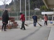2月もすでに中旬を迎え,どことなく春めいた天候になってきました。春は,『別れと旅立ち』の時。特に,卒業を控えた6年生は,6年間の思い出が様々に交錯し,別れをヒシヒシと感じている様子です。そんな思い出深い小学校との別れに際し,『卒業記念事業』がスタートしました。今,朝見かけるのは,『感謝の奉仕活動』です。6年間過ごした学校に感謝し,きれいにして巣立とうと,朝清掃に取り組んでいます。まだまだ寒い中ですが,朝の『あいさつ運動』に加え,校舎前を一生懸命掃除している姿に,一人一人の鹿折小学校への熱~い思いを感じることができます。