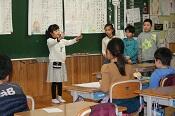 休み時間には,校庭に飛び出し,子供たちと楽しく遊んでいます。そんな姿を見るにつけ,『若さ』ってすばらしいなあと,うらやましく思います。わずか1週間の訪問期間なので,全学年・全学級をローテーションして,授業のサポートはもちろん,給食やお掃除まで一緒に活動しています。