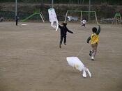 今日,珍しく『凧揚げ』をする1年生の姿を見つけました。(凧と言っても,昔の奴凧や角凧ではありません。俗に言う,『グニャ凧』です。)図工の時間に作ったのでしょう。校庭を元気に走り回って,何とか揚げようと苦心していました。あいにく風がなく,なかなか揚がりませんでしたが,TVゲームなどでは味わえない『遊びの楽しさ』を味わっていた様子です。うまく揚がらないと,友だちと首をひねって,「ああしよう,こうしよう!」と相談する姿も・・・。「校長先生・・!」と助けを求める子も。そのようなことを繰り返しながら,人とのコミュニケーションの力も育んでいくのだなあ~と,子供と遊びの大切さを垣間見ることができました。