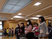 今日は,朝から雨。雪から雨に変わったと言うことは,確実に季節は,冬から春に向かっている証拠。校庭が使えない子供のために,今日の業間運動は,上学年が体育館で「長縄跳び」,下学年は若草ホールで「みやぎ元気アップエクササイズ」に取り組みました。
