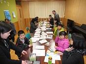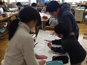 ベルマークの整理作業は,とても地味な作業ですが,集まったベルマークをきれいに切って,点数を数え,袋詰めする。それをベルマーク財団の送ることで,様々な支援が受けられるといったシステムになっています。ベルマークは,大変小さなものなので,子供の手ではなかなか難しいです。その整理作業をお父さん・お母さん方にお手伝いいただいたのです。10名以上の保護者の方々に集まっていただきました。(応援に駆けつけてくれたお友だちも何人かいました。)夕食時の大変お忙しい中だったのもかかわらず,大変ありがとうございました。これも,鹿折小を支える大きな力のひとつです。ありがとうございました。