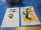 今日のワークショップは,そんな大宇宙をイメージしながら,絵の具を使った3つの技法を通して表してみるものでした。その様子は,写真の通りです。