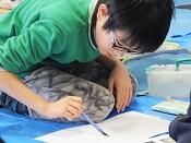 高学年の子供たちは,言葉を発せず驚くほど静かに集中していました。逆に,低学年の子供たちは,描いている絵に向かってか,描いている自分自身に向かってか,まるで対話しているようにおしゃべり(お話し)しながら取り組んでいました。これが,子どもたちの物事に夢中になって集中するという姿なのかもしれません。