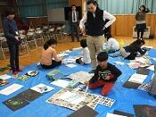 今日、東京芸術大学から安藤先生ら複数の先生方をお招きして『図工ワークショップ』を行いました。休日ということもあり、参加者は多くはありませんでしたが、親御さんも一緒に、水彩絵の具のいろいろな使い方(可能性)に挑戦しました。安藤先生はJAXAの事業として、『お月見』ならぬ『お地球見』プロジェクトの発案者です。『お地球見』とは、宇宙から地球をいろいろな手法でながめるというプロジェクトで,その時の様子を映像で紹介いただきました。無重力状態の中,球になって空中を浮遊する水に映った地球の姿は,とてもきれいでした。