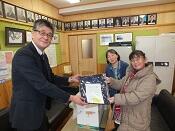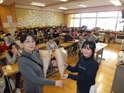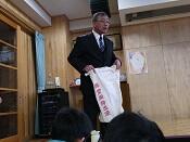 また,午後には,東京の『自由学園』のOGの方々が,新1年生用の『手縫いの手提げバッグ』のプレゼントを届けてくださいました。震災の翌年から今回で5回目になるそうです。バッグを縫ってくださっているた方々は,『自由学園』のOGの方を中心に,自由学園の先生方やこの活動に賛同する全国各地にいらっしゃるそうです。遠くは,イギリス,ロンドンにお住まいの方も以前はしらっしゃったそうです。この5年間で,15,000人を超す被災地の子供たちを支援してきたそうです。一針一針縫いながら,ミシンをかけながら,顔も名前も知らない子供たちの笑顔を想像しながら作ることが,この上ない喜びだとお話しになっていました。大切に使い,一生懸命勉強に励むことが,支援してくださった方々への一番の恩返しだと思います。この他にもトラック協会様や東京日野市の岩下様(個人)などから,新入学の祝い品をいただいています。本当にありがとうございます。