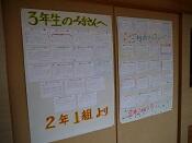 3年生の教室前には,先週行った『総合的な学習の発表会』への2先生からの感謝と感想のメッセージが掲示してありました。3年生が,新学期から始まる『総合的な学習』に見通しをもってもらおうと,2年生を招待して発表会を開きました。感想からは,2年生の『総合的な学習』への期待感が強く感じられます。