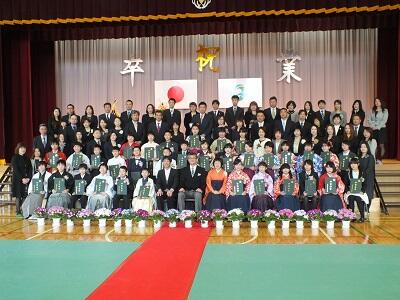 平成28年の卒業式,33名の卒業式。卒業生は,大震災直後の4月に入学した子供たちです。壊滅的な被害を受けた鹿折地区の復旧・復興と共に,歩んできた子供たちです。辛く,悲しい,不自由な中で学校生活を送ってきた子供たちだけに,誰よりも粘り強く,我慢強く,誰に対しても思いやりをもって優しく接することができる自慢の子供たちです。今日の感動を胸に,これまでの頑張りを糧に,中学校でも大きく羽ばたいてほしいと願います。
