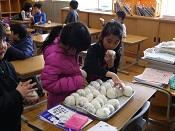 そのような実態を踏まえ,本校では,震災があったこと,その後悲しく,苦しい生活があったこと,そして,その中で人々が助け合い,いたわり合って難局を乗り越えてきたことを伝えるひとつの方策として『おにぎりの日』を実践してきました。これまでは,各家庭からのおにぎりの持参でしたが,給食がすでに終了した第3回目の今回は,お知らせしましたとおり支援でいただいた米を炊いて,それをおにぎりにしました。