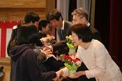 校長先生からは,①卒業後は新しく高い目標を定め,一生懸命頑張ってほしい。②支えて下さった多くの方々への感謝の気持ちを忘れず,互いに思いやりの心をもって生活してほしい。③ふるさと『鹿折』を愛し,復興に貢献できる人になってほしい。と,はなむけの言葉がありました。ハンカチでそっとまぶたをぬぐう姿も男女問わず多く見受けられ,十分ではなかった学習環境でしたが,充実した3年間を過ごしたことが,垣間見られました。