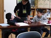 今年も,明日の29日までの予定で,鶴見大学の学生さんによる『春の学び~ば』が開催されています。今日は午前中に離任式がありましたから,午後からの開催でしたが,60名を超すお友だちが参加しました。しかも,楽しいイベントなしの学習中心の会でしたのに・・・・・・・。学生さんたちは,参加する子供たちのために『手作りの教材』まで準備して下しました。漢字練習をする子,計算問題に取り組む子,持ってきた自前の問題集に取り組む子,そして,いただいた教材に取り組む子・・・・・・,様々ですが,みんな一生懸命に取り組んでいました。なかには,本当は一人でもできるのに,ちょっぴり甘えん坊さんになっているお友だちも・・・。でも,進んで学ぼうとする意欲に満ちた鹿折っ子たちです。学生さんたちも「かわいい,かわいい。」の連発です。