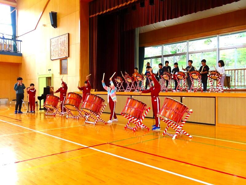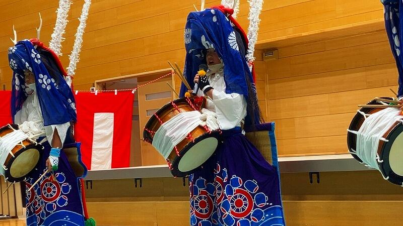 月立小では、鹿踊りや神楽の伝承活動を通して、普段なかなか手にすることのできない様々な和楽器にも親しむことができます。