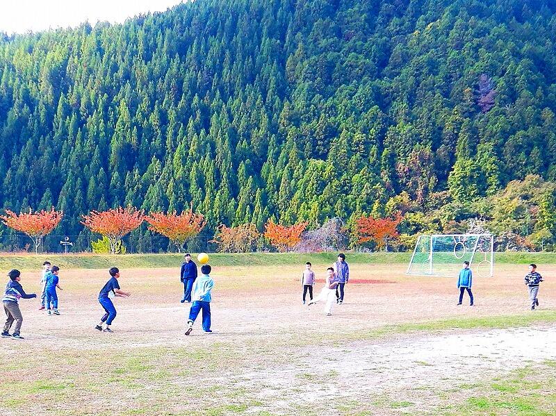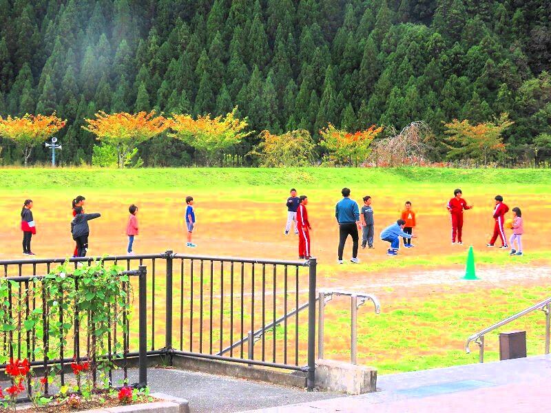 業間と昼休みには、中・上学年の子供たちも校庭に出てきて、みんなで遊びました。