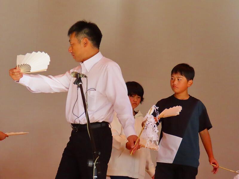 5・6年生への神楽指導も、ステージ発表会の本番を想定した練習に入ってきました。