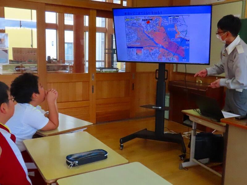 実際の津波の映像や、大川付近の想定浸水域図を見せていただきました。災害時の動きについて具体的に考えることができました。