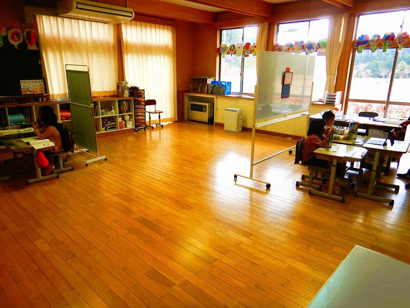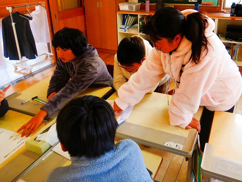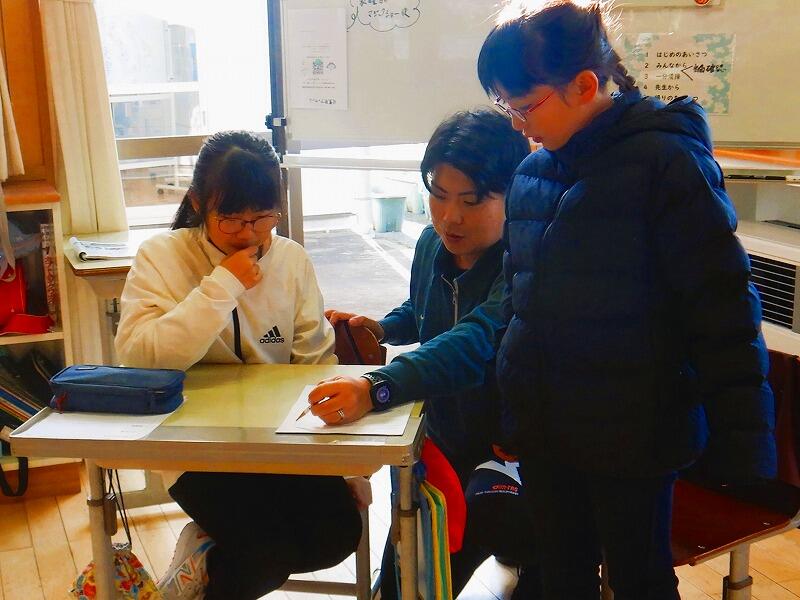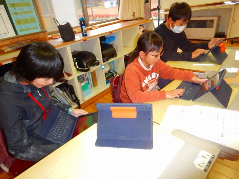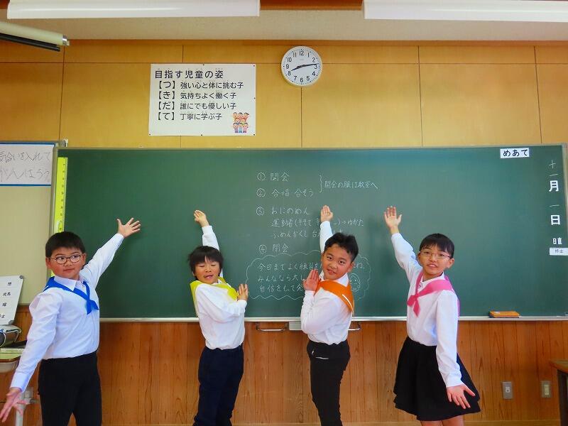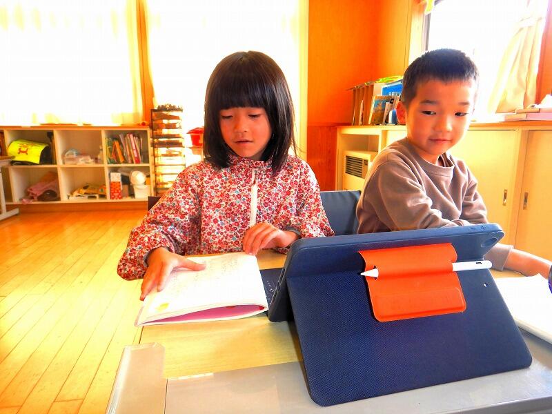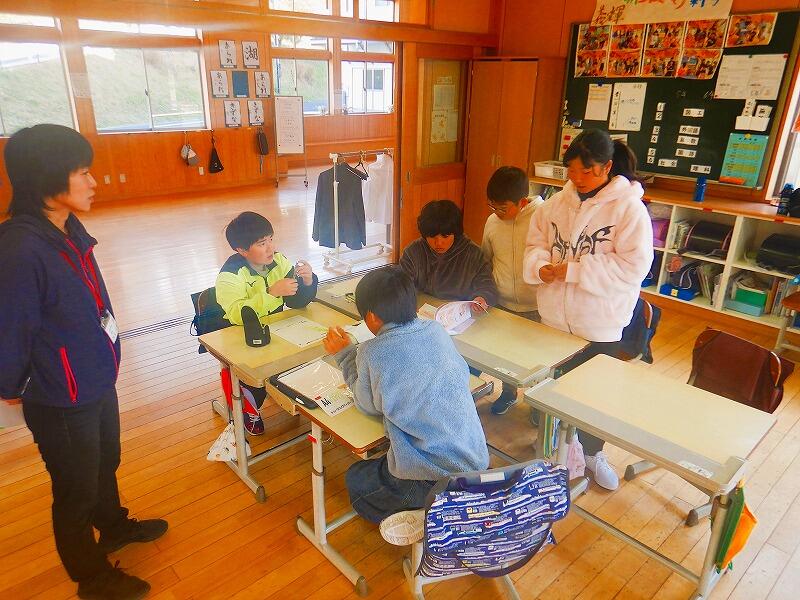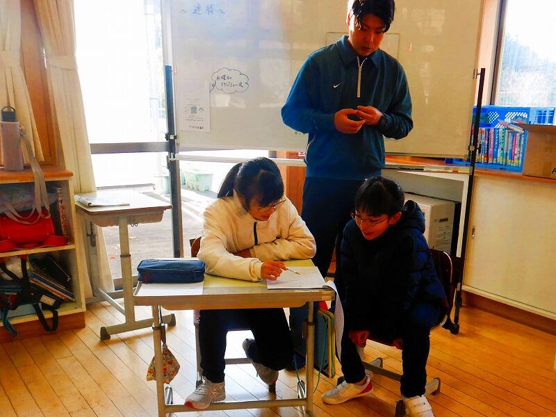 複式指導なので担任が常にそばにいませんが、自分たちで「発表します」「聞こえますか」「しつもんします」などと言いながら進めており、短期間でも成長のあとが見られました。