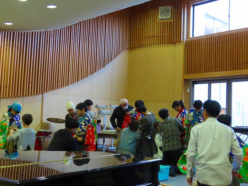 狭い控えスペースでの支度に苦労しますが、子供たちの表情は引き締まっており、やる気に満ちあふれています。